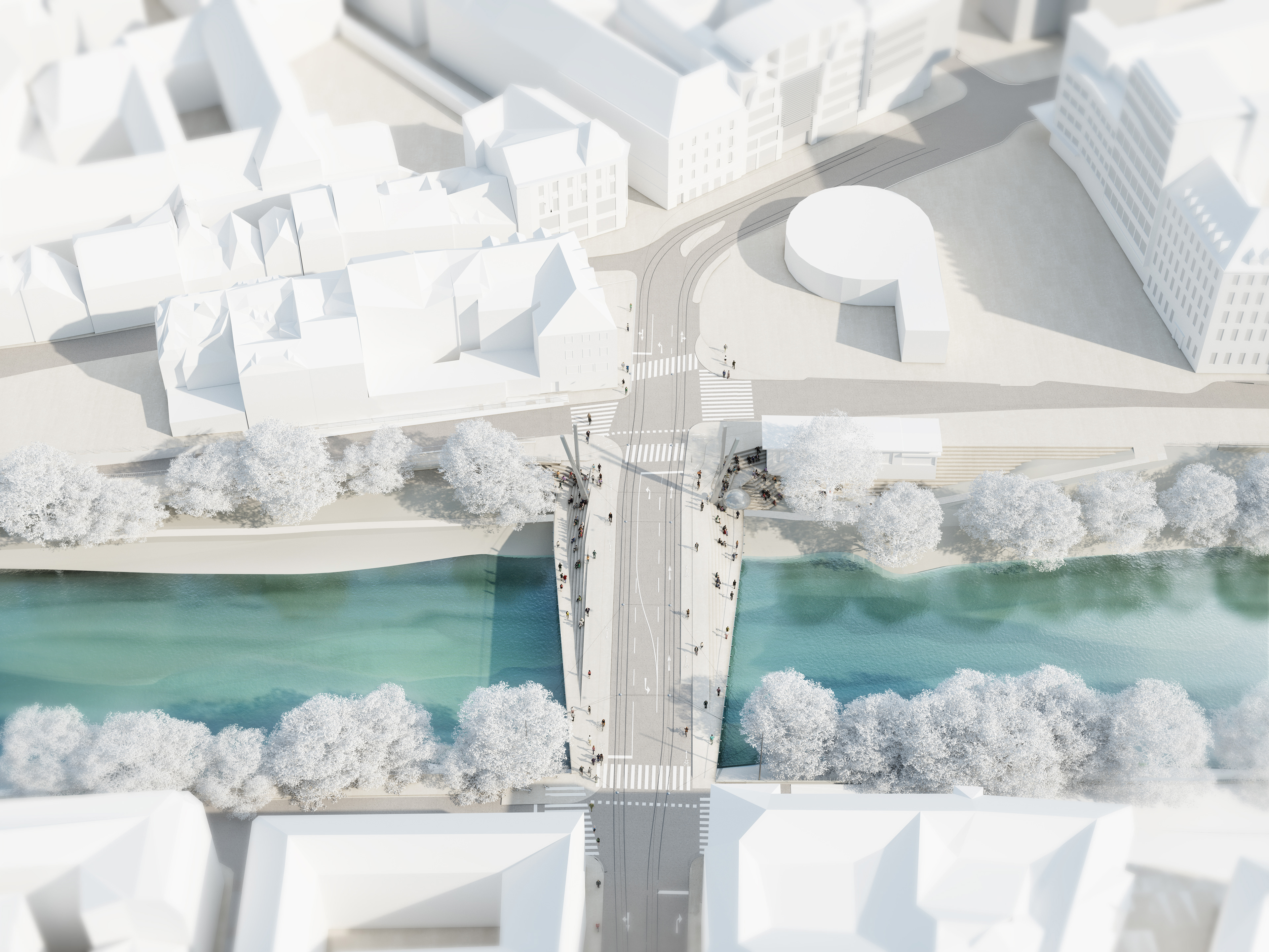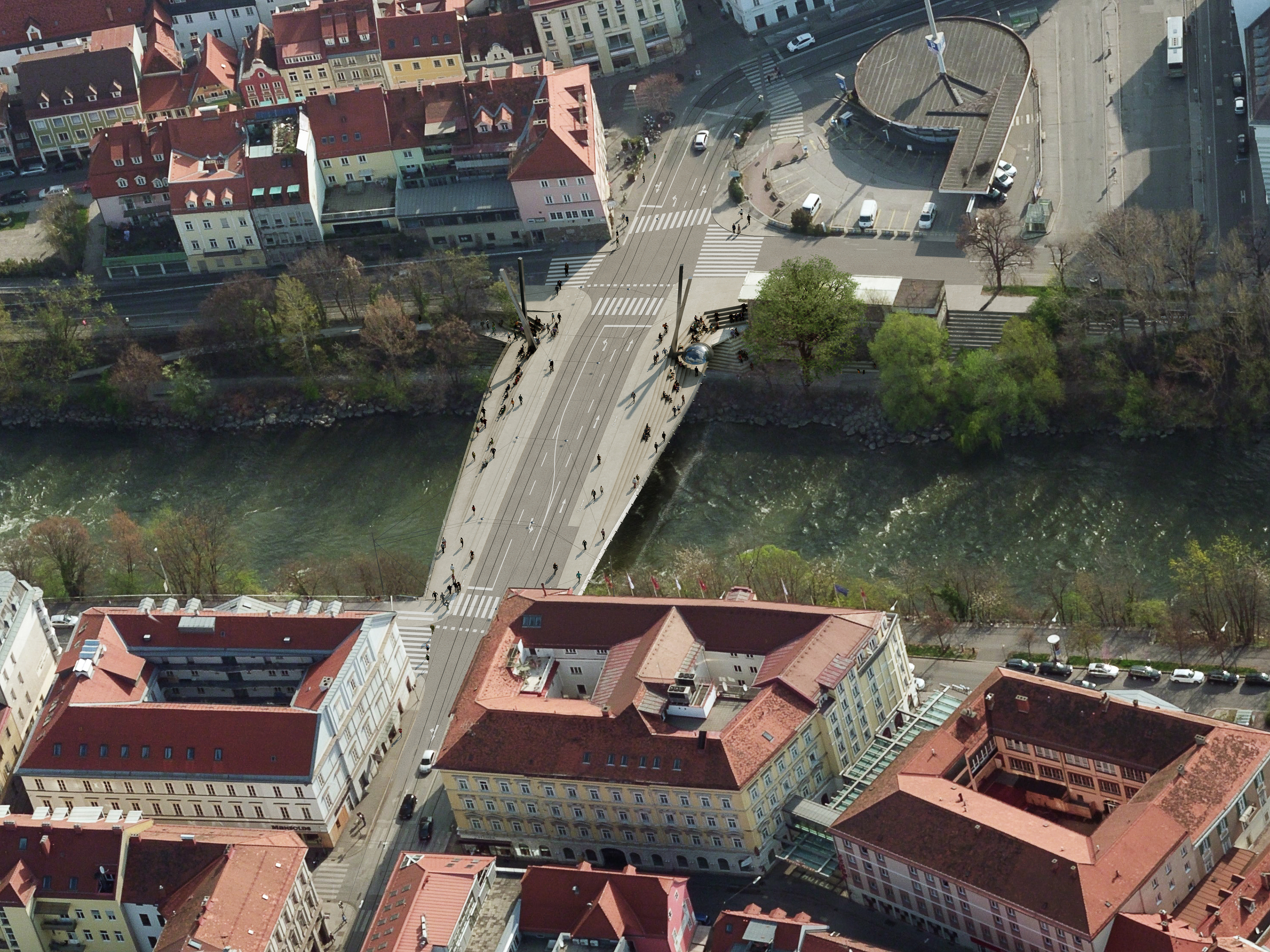 Visualisierung des Wettbewerbsbeitrages für den Neubau der Thegetthoffbrücke in Graz für Wolfgang Tschapeller. 1. Preis